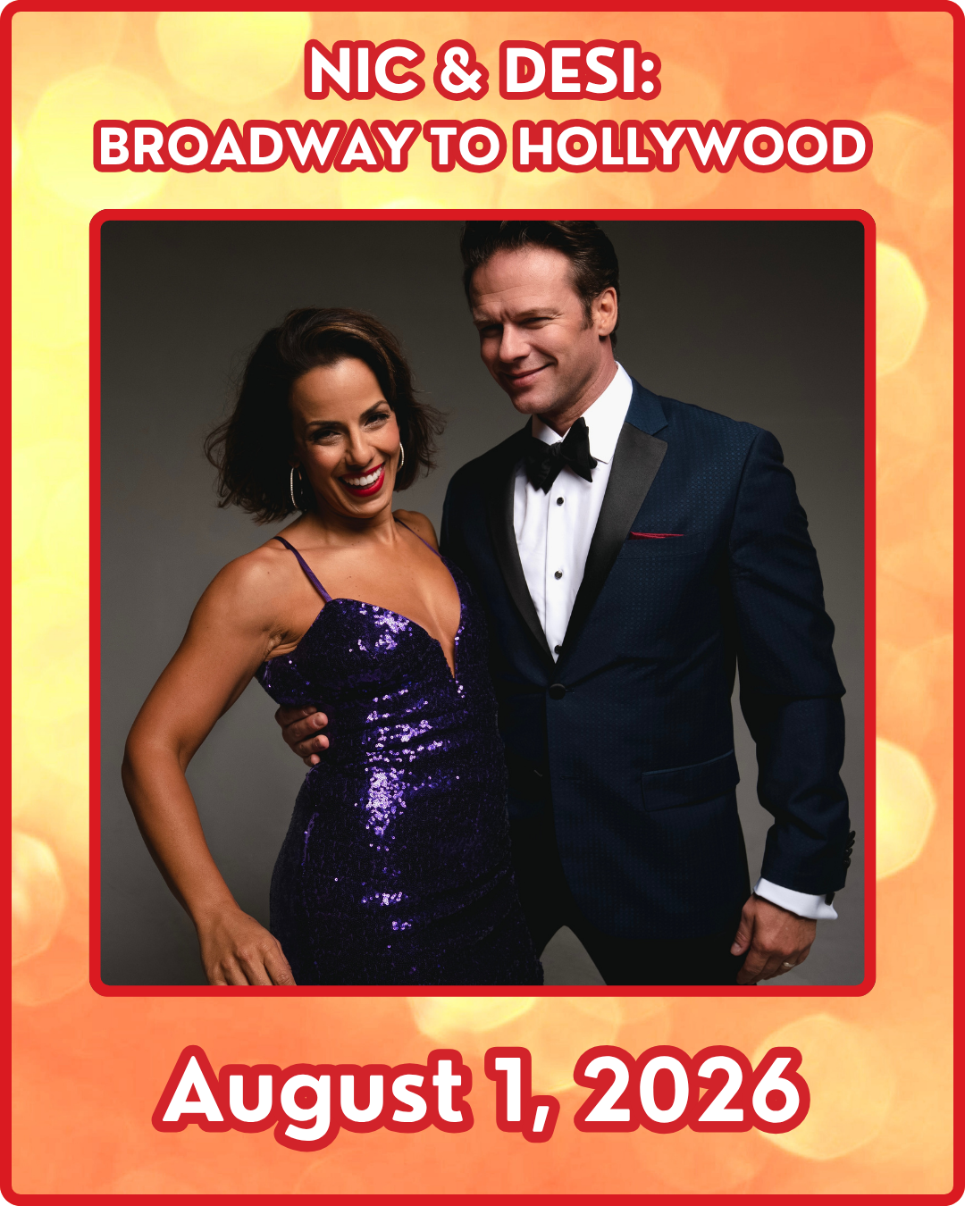 Starring Nicolas Dromard and Desiree Davar, this electrifying evening celebrates the magic of Broadway, the American Songbook, and the golden age of Hollywood movie musicals. With powerhouse vocals, dazzling choreography, and effortless charm, the award-winning duo delivers a fast paced night of music, romance, humor, and spectacular dancing.